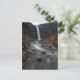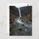 Vertical postcard of the water of Svartifoss waterfall falling over the black basalt rocks into the wild river in Skaftafell National Park in Iceland in autumn.
