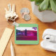 The key chain is made of metal and really sturdy. The flower design is really cheerful. The logo and colors are clear and crisp!