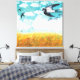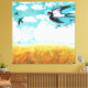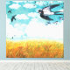 A flock of Swallows flying over a wheat field - Book Illustration for a picture book 'The scarecrow and the swallow' (Written and illustrated by Julia Doria). Perfect gift for nature and bird lover.
