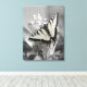 Swallowtail butterfly on a flower in black and white with a hint of yellow