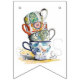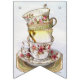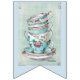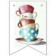 Lovely collection of teacups, saucers, teapots, sandwich stand, cupcakes & macaroons on the swallowtail party bunting.