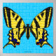 Digital drawing of an Eastern Tiger Swallowtail butterfly, showcasing its black and yellow wings against a blue backdrop.
