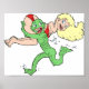 This design is a swamp monster. The swamp monster is green and is running away with a woman.This swamp monster design looks great on this Poster