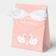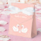 A soft and sweet peach and white summery swan baby shower design is great for a celebration at the lake.