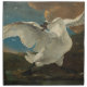 The Threatened Swan, which portrays a swan aggressively defending its nest, became a symbol of Dutch national resistance, although it is unknown if Asselijn intended it to be so. In particular, it was interpreted as a depiction of Johan de Witt.Several inscriptions were added by later owners of the painting, including "Holland" on one of the eggs, and "Enemy of the state" next to the dog that is threatening the nest. Some parts of the painting are less realistic than the swan, such as the low-hanging clouds, the dog and the flat-looking eggs. The painting has been dated to the 1640s. It is considered to be Asselijn's most famous work and was the Rijksmuseum’s first acquisition.