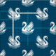 Swan Pattern 02 - White on Ocean Blue Fabric