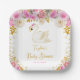 Swan Pink and Gold Roses Baby Shower Paper Plates
