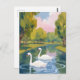 Swan Pond Boston Common Massachusetts Watercolor Postcard