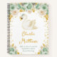 This cute and whimsical notebook features an elegant swan and sage green roses floral arrangements with faux gold glitter confetti. The text combines handwritten script and sans serif fonts for a stylish and modern look. It can be personalized with your baby's birth stats, such as name, size, date and time of birth, or if you would like to give it as a shower gift you are able to edit and remove text.
