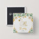 This cute and whimsical button can be personalized with a name or title, such as dad, grandpa, uncle, big brother etc. The design features an elegant swan and sage green roses floral arrangements with faux gold glitter confetti. The text combines handwritten script and sans serif fonts for a stylish and modern look. This is perfect for a swan themed baby shower.