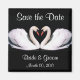 Save the Date magnets, with elegant swans in a heart shape on a black background. Enter your information in our easy-to-use template.