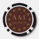 Give the guests, bridesmaids, groomsmen, or anyone else attending or helping with your elegant wedding or special event a fun treat with these customizable poker chips. One side of the poker chip features a gold Art Deco wheel, with geometric and fan-like designs, on a brick red background. The other side has a similar Art Deco outer wheel as a frame around a sample set of initials and date. The sample text can be customized with your own details or a special message of your choice to create a unique and personal token to commemorate your big day. This design will match any product from the Swanky Art Deco in Red line so that you can make your dazzling wedding or special event as coordinated as you like.