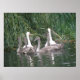This poster features a beautiful photograph of a pair of adult swans and their 4 cygnets swimming off into the distance along a calm peaceful river.