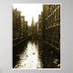 Swans in Amsterdam canal at dawn poster art. A tranquil cityscape view on the "Oude Kerk" ("Old Church") with Amsterdam canal houses, canal and swans swimming at sunrise. This romantic urban streetview photography poster print is fully customizable, add your own texts and images! A beautiful Amsterdam souvenir poster gift to hang on your living room wall at home or in your working space at the office, frame this Amsterdam print for an even more exclusive look!