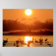 Swans in Lake at Sunset Poster