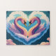 This puzzle design features a swan couple standing head-to-head while forming a heart over clouds. This is a magical design for romantic gifts.