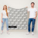Cute modern style swan and waves pattern fleece blanket in neutral black, white, and gray. The blanket has a black flag with your personalized name at the bottom left.