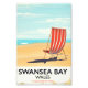Swansea Bay Wales Seaside poster in a vintage style of a vintage striped deck chair on the sandy beach during a summer holiday.