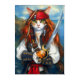 Ahoy, matey! Prepare to be charmed by the most adventurous pirate captain on the seven seas. This stunning piece of fantasy art features a confident and sassy she-cat, a swashbuckling buccaneer ready for adventure. With her magnificent, flowing red hair adorned with beads and feathers, a classic pirate hat bearing the Jolly Roger, and a gleaming cutlass at the ready, she is the very picture of a fierce and charismatic hero.