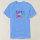 A vibrant t-shirt design featuring the text "Sway with Grace" in a multicolor gradient, where the colors flow smoothly into each other