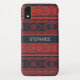 This Christmas phone case features a sweater style red and black pattern design . Personalize it with a name.
