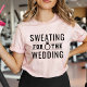 Crush those pre-wedding workouts in this pink "Sweating for the Wedding" tee featuring bold black typography with a diamond ring accent. The motivational saying brings fun energy to every gym session and makes a thoughtful gift for any bride-to-be on a fitness mission. Perfect for bridal bootcamp, spin class, and every sweat session leading up to the big day.