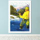 Vintage travel poster for Sweden showing a fisherman in the outdoors.