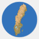 A map of Sweden is centered over a flag-color background on this sticker. Stick up for Swedish values!