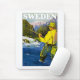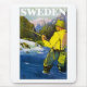Vintage travel poster promoting fishing and outdoor pursuits in Sweden.