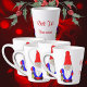 Swedish gnome with red hat and yellow lantern lights the way for a cozy hygge Christmas. The Tomten is known in Sweden's folklore for mischievous fun pranks. Mug says God Jul, which means Good Christmas. There's a spot for the name too on this Scandinavian Latte mug you can use for your Swedish Fika. Click personalize to create your perfect winter season holiday gift.