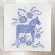 A traditional Swedish Dala Horse design in periwinkle blue and white. Original art by Nic Squirrell.