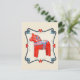 Traditional folk art carved wooden horse from the Dalarna region of the Scandinavian country of Sweden, in Norwegian rosemaling inspired frame scroll of hearts and flowers. Dala hast horses are often seen during the Christmas holidays in Sweden, Norway and Denmark. From Scandinavian Gifts.
