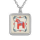 Swedish Dala Horse Folk Art Framed Silver Plated Necklace