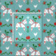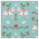 Nordic Christmas fabric featuring a pattern of Swedish Dala horses in white with details in red, blue, and green surrounded by flowers and hearts.