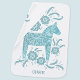 Swedish Dala Horse Teal Green Custom Name Baby Blanket
