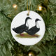 Lightweight, smooth, pure white ornament with nice sheen. Perfect size to be seen from across the room ... and to attract closer inspection! Price was great for ordering enough for the whole family! Clear, bold black design just as requested. Matches the order exactly. Just so nice!