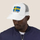 Swedish flag of Sweden custom trucker hat. Custom cap for national pride holidays, politics, political party and international sports event like soccer, golf, tennis etc. Add your own funny quote or slogan. Scandinavian pride headwear design.