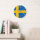 This elegant wall clock features an image of the flag of Sweden covering the entire face. The numbers are printed in a gold Roman numeral design. It adds a lovely touch of Sweden decor to any room!