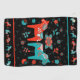 This golf towel has a Swedish folk dala horse design with matching folk art flowers in Sweden's flag colors of teal and red on black background. At the top and bottom are a row of matching smaller dala animals and flowers. You can make the background pattern on this towel smaller or larger.