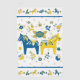 Swedish Folk Dala Horse l Blue and Yellow Golf Towel