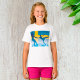 Inspire young dreamers with this girls T-shirt featuring a graceful silhouette of a figure skating pair with the Swedish flag in the background. Perfect for skating fans, cultural events, or just adding a fun and sporty touch to everyday outfits. Great for young athletes and lovers of Nordic charm.