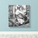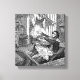 Wrapped Canvas featuring this action-packed scene in one of London's Penny Dreadfuls of Sweeney Todd's barber chair in action as it's flipped and drops a hapless, terrified and stunned victim below the floor to be left to Sweeney's non-existing mercy. The words announcing Sweeney Todd Barber Shop are carved into the wall behind the killer.
