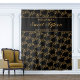 Sweet 15 birthday party backdrop in black and gold - perfect for photobooth, welcome sign or just as a large piece of party decor to help set the theme. The design has a diagonal, step and repeat, tiled pattern of Sweet Fifteen, which is lettered in swirly calligraphy and elegant typography. The template is ready for you to add the birthday girl's name and event date.