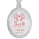 Sweet 16th Birthday - Contemporary Sweetheart design in red and white. Personalize this charming necklace with the Sweet 16 birthday girl's name and birthdate. Set in beautiful sterling silver square pendant. Makes a unique gift that your sweet and special girl will cherish for a lifetime.