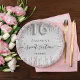 Sweet 16 birthday silver pink metal glitter script paper plates