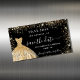 A girly and trendy Save the Date magnet for a Sweet 16, 16th birthday party. A stylish black background decorated, faux gold glitter sparkles and a golden dress. Personalize and add a date and name/age. The text: Save the Date is written with a large trendy hand lettered style script.