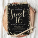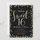 Sweet 16 Black Gold Glitter Script Birthday Chic Invitation
