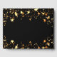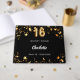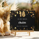 A stylish black background with faux gold stars. Add your name, and text. Age number is written with a balloon style font.