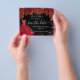 A girly and trendy Save the Date for a Sweet 16, 16th birthday party. A black background decorated red roses, red faux glitter sparkles and a red dress. Personalize and add a date and name/age. The text: Save the Date is written with a large trendy hand lettered style script.