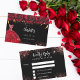 Front: A black background decorated with red faux glitter, sparkles. Personalize and add your name and dates.